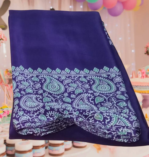 এই আজরাখ ক্রেপ সাওন শাড়িটি ঐতিহ্যবাহী শিল্পকর্ম ও আধুনিক সৌন্দর্যের এক অনন্য সংমিশ্রণ। সফট ক্রেপ কাপড় দিয়ে তৈরি হওয়ায় এটি হালকা, শরীরের সঙ্গে সহজে মিশে যায় এবং সারাদিন পরার জন্য আরামদায়ক। শাড়িটির গায়ে রয়েছে আজরাখ প্রিন্ট—গুজরাট ও রাজস্থানের প্রাচীন ব্লক প্রিন্টিং প্রযুক্তি—যা জ্যামিতিক ও ফুলেল নকশায় তৈরি এবং প্রাকৃতিক রঙ ব্যবহার করে হাতে ছাপা হয়। এই নকশাগুলি গভীর ইন্ডিগো, লাল ও মাটির রঙে ফুটে ওঠে, যা শতাব্দীপ্রাচীন টেক্সটাইল ঐতিহ্যের প্রতিফলন।