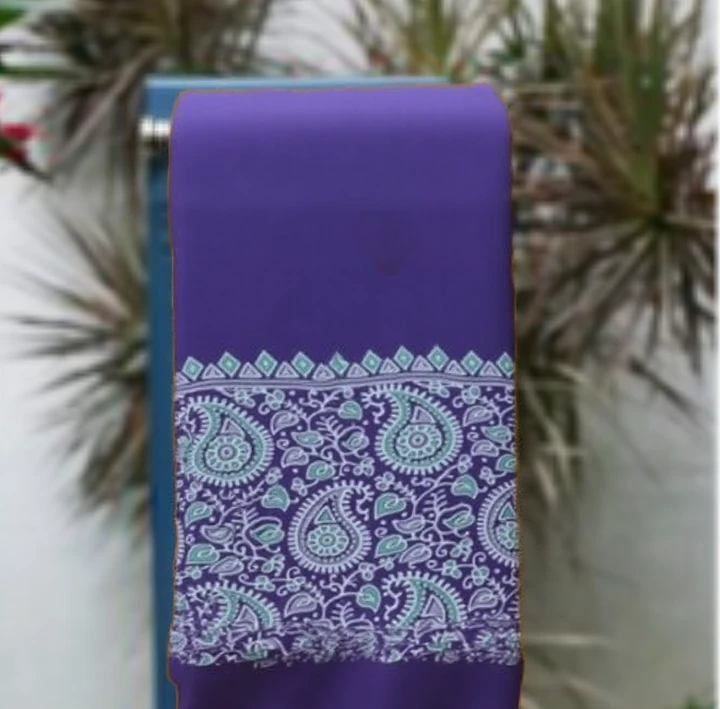 AJRAKH CREPE SAON Saree Violet with Ajrak Par
