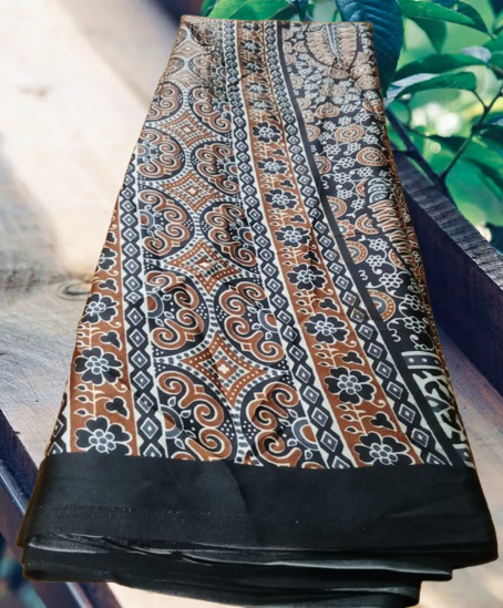AJRAKH Print saree on Brown Black