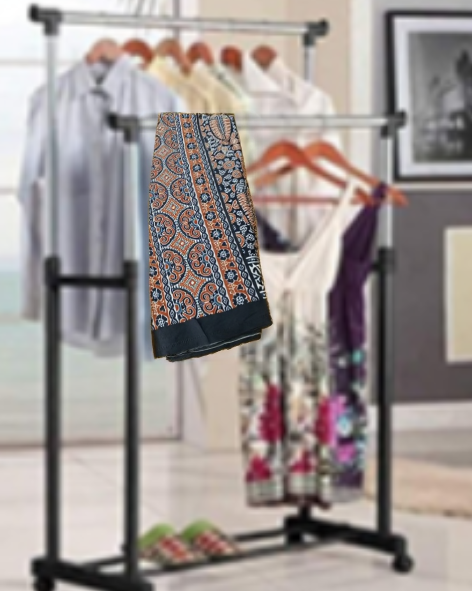 This Ajrakh print saree in rich brown and black tones is a stunning tribute to traditional Indian textile artistry. Crafted using the ancient Ajrakh block printing technique, it features intricate geometric and floral motifs created with natural dyes and hand-carved wooden blocks. The deep, earthy palette of brown and black adds a timeless sophistication, making it ideal for both festive occasions and elegant daywear.