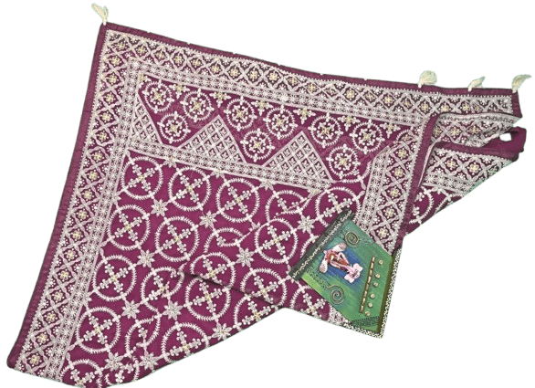 The lightweight fabric ensures comfort and ease of draping, making it ideal for festive occasions, weddings, or cultural events. The subtle contrast between the mauve base and white embroidery enhances its sophistication, making it a timeless addition to any wardrobe.