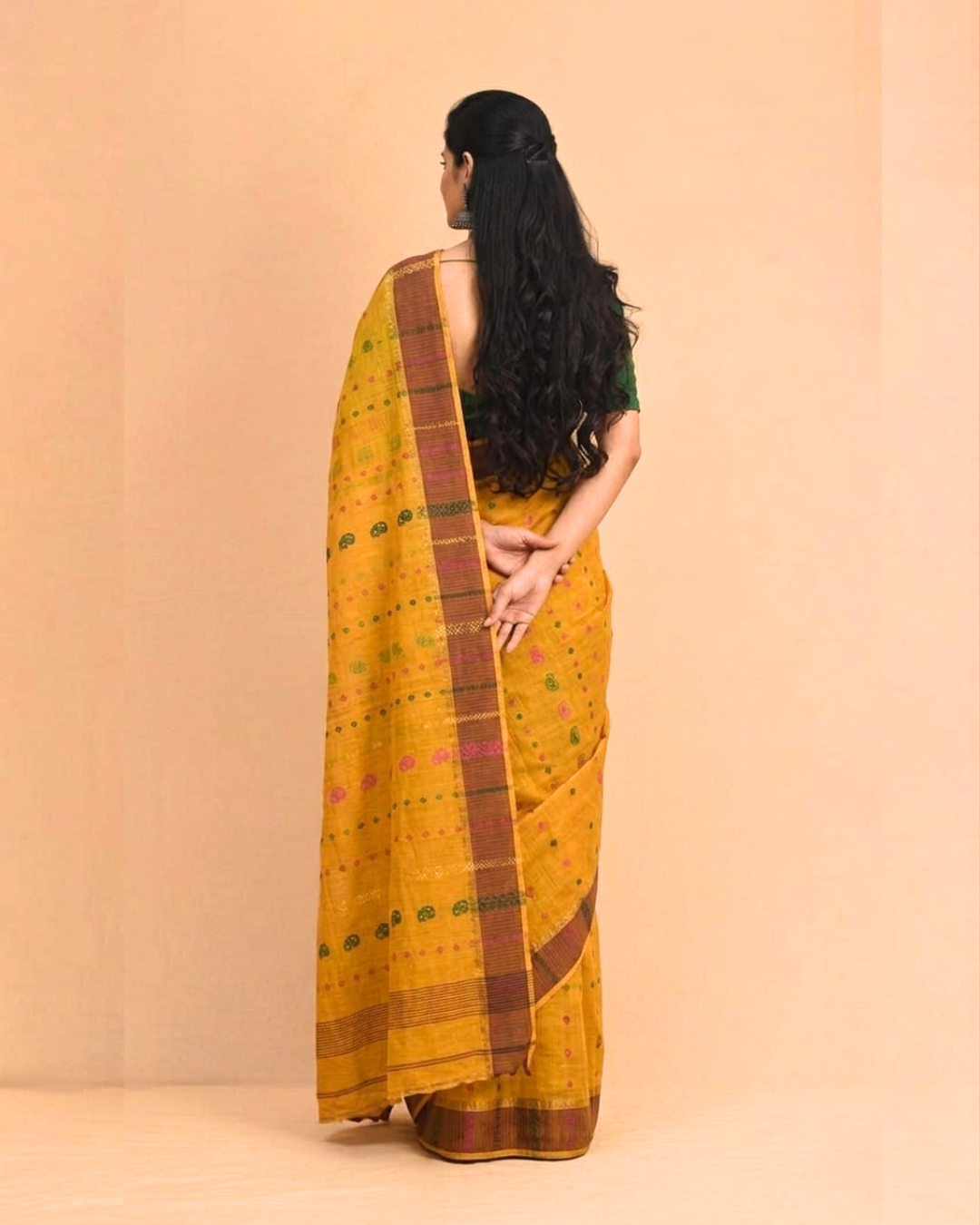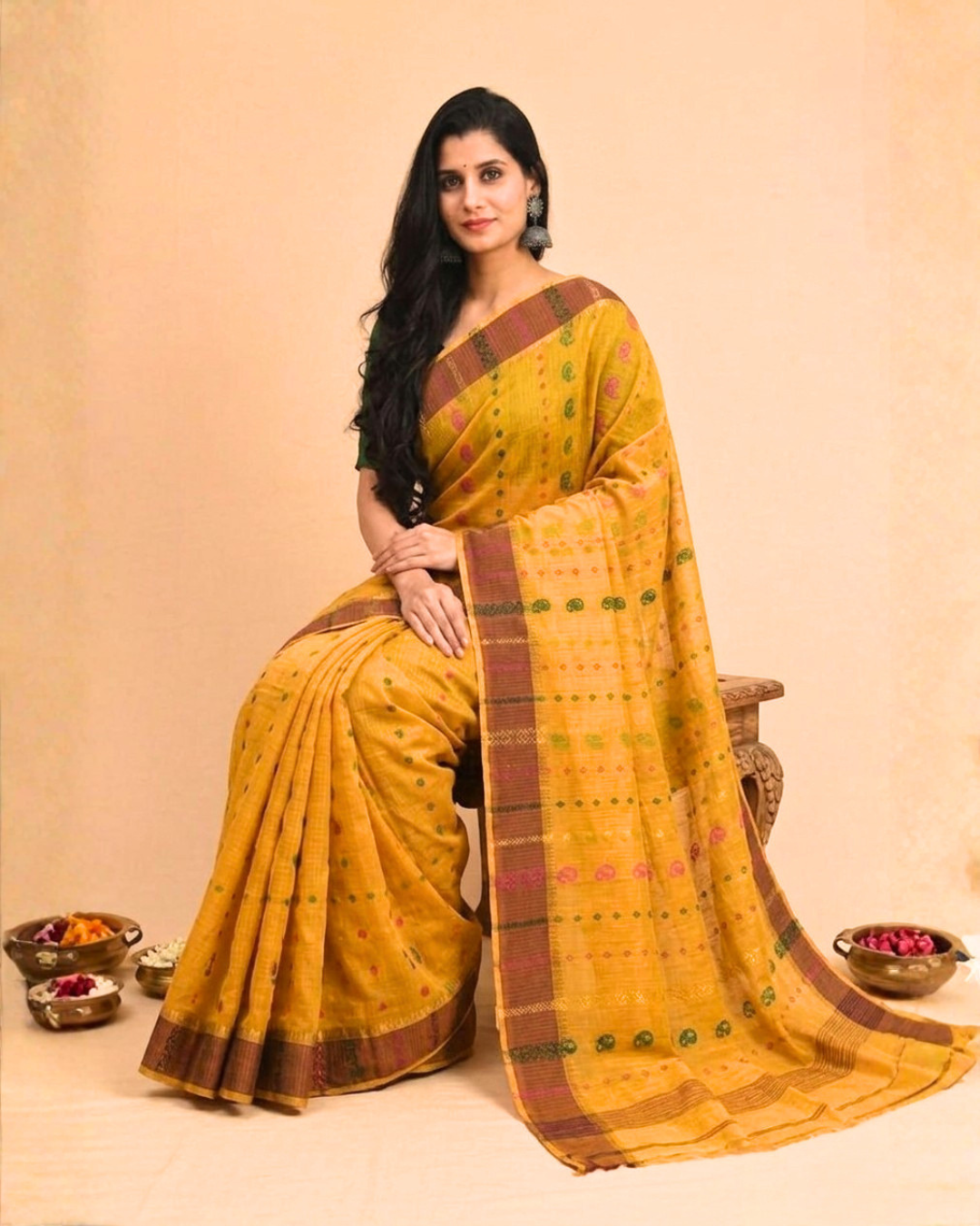 Whether adorned with floral vines, paisleys, or geometric patterns, each saree is a wearable canvas of Bengal’s weaving legacy. It’s not just a garment—it’s a story of patience, precision, and timeless beauty.