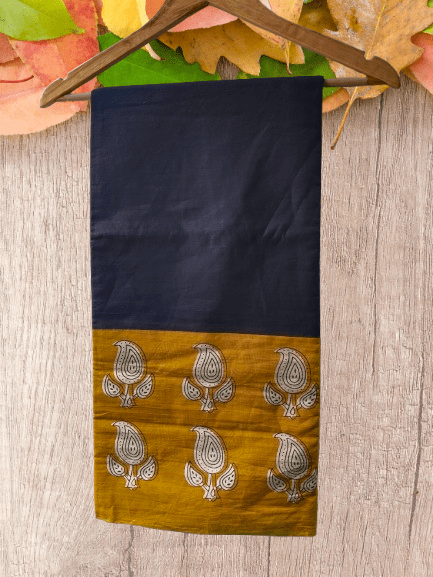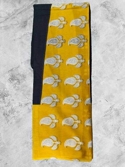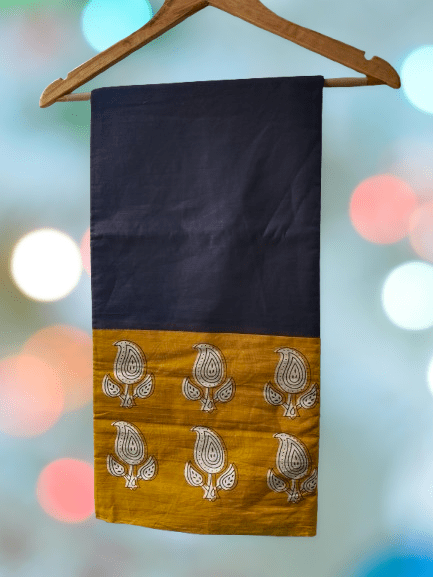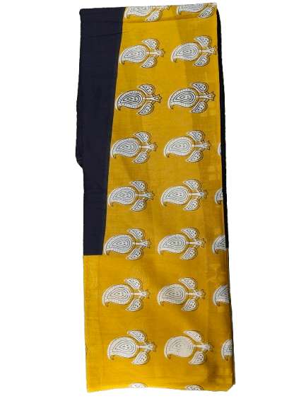 কলমকারি শাড়ি – হলুদ রঙের সঙ্গে কালো পাড়