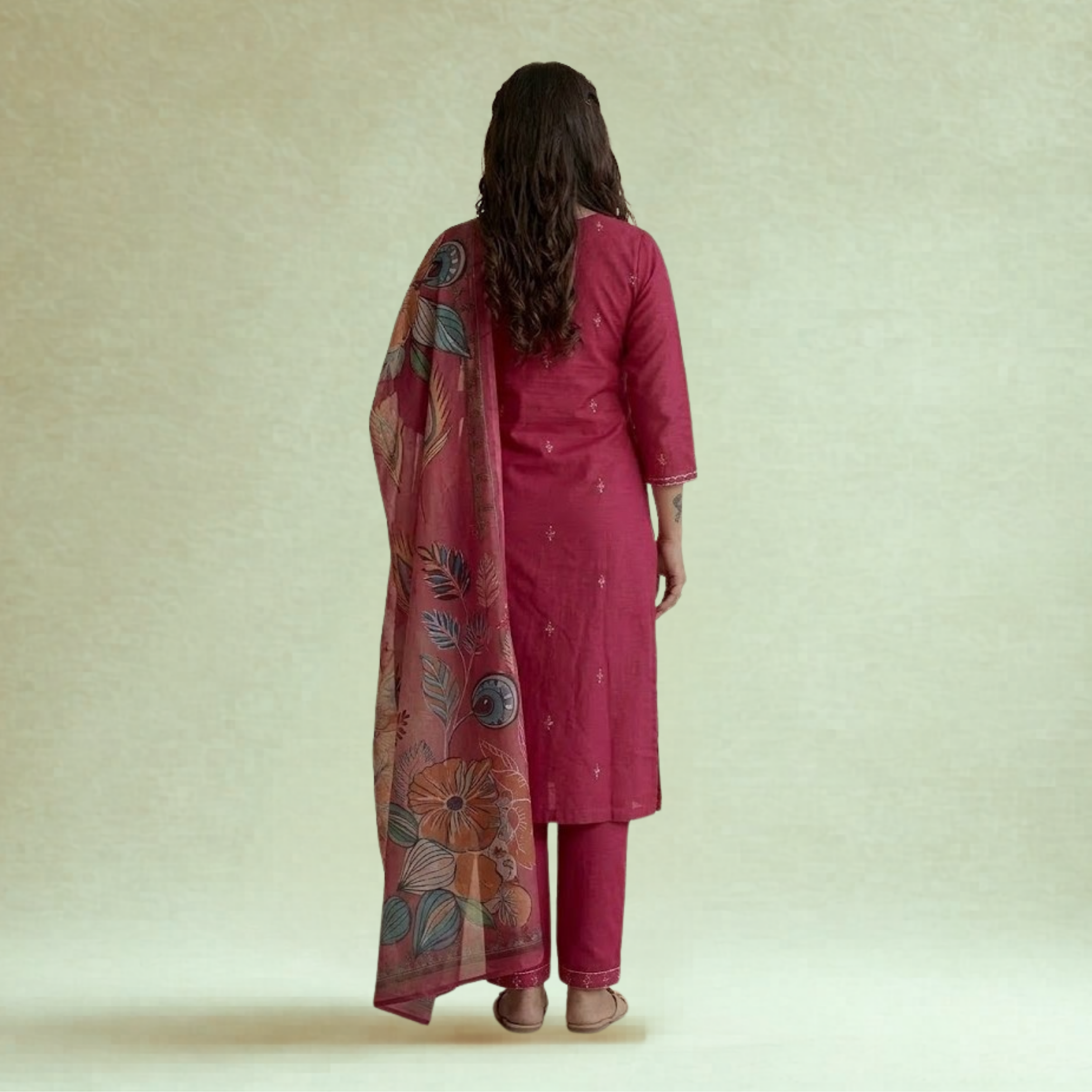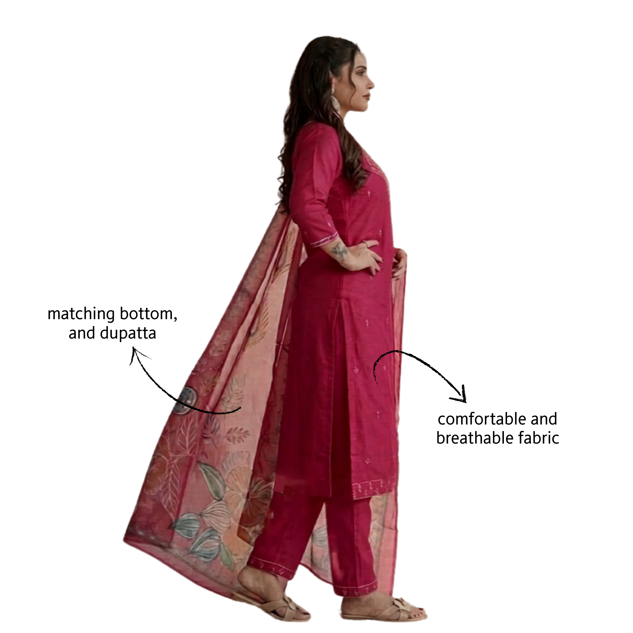 Three-Piece Kurti Set is a versatile and elegant ethnic ensemble that includes a kurti, matching bottom, and dupatta. Crafted from comfortable and breathable fabric, it offers a perfect blend of style and ease. Ideal for casual outings, festive occasions, or office wear, this coordinated set brings together traditional charm and modern simplicity for a graceful look.