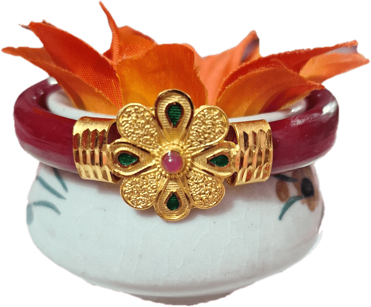 Sankha with leaf and love design in pair size 24 Gold Plated