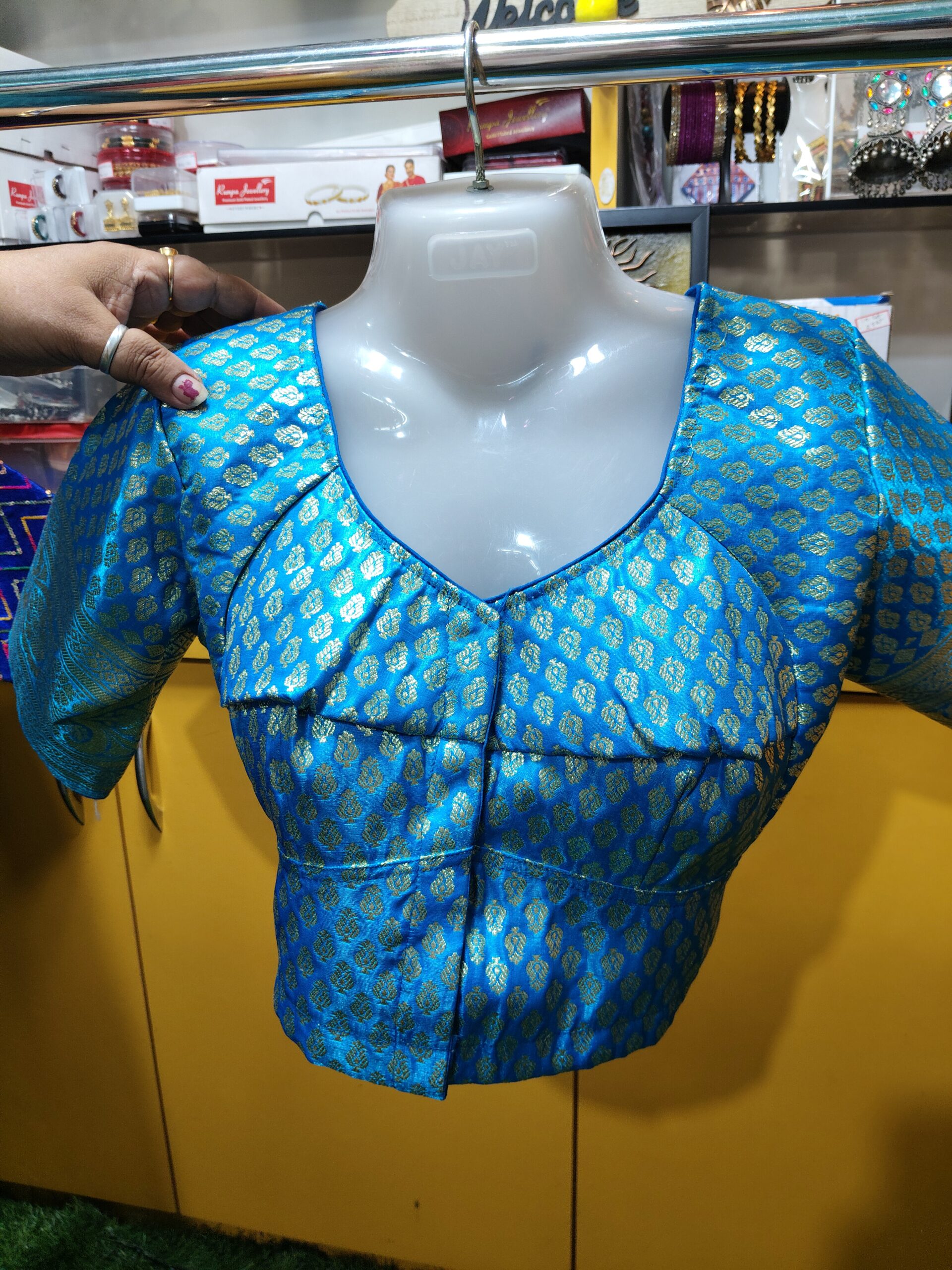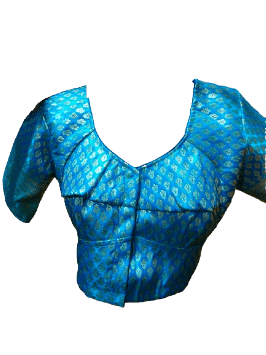 This elegant blouse is crafted from Banarasi silk, known for its luxurious texture and intricate weaving. The sky blue hue exudes sophistication, making it a versatile choice for both festive and formal occasions. Featuring traditional Banarasi motifs, the blouse showcases fine craftsmanship with delicate zari work that enhances its regal appeal.